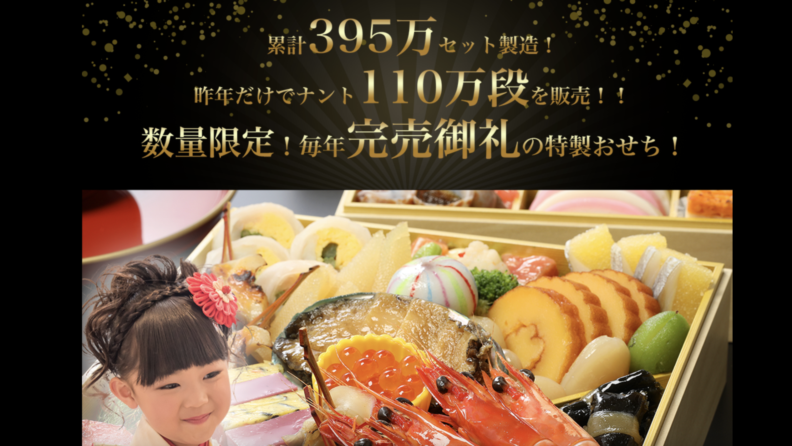 累計販売数はなんと395万セットを突破。毎年予約開始と同時に注文が殺到し、完売する人気商品です。その理由は、味のクオリティ、盛り付けの美しさ、そしてコスパの高さ。初めてのおせち選びでも「これなら間違いない」と安心して選べる定番ブランドです。