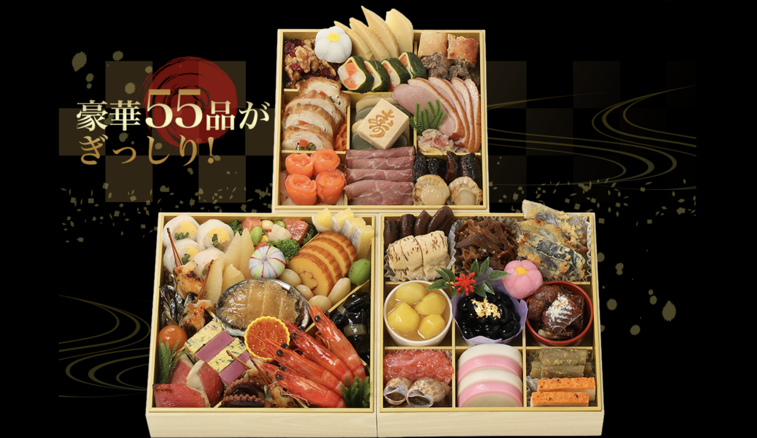 色とりどりの食材が重箱を彩り、開けた瞬間に“お正月”を感じられる美しさです。