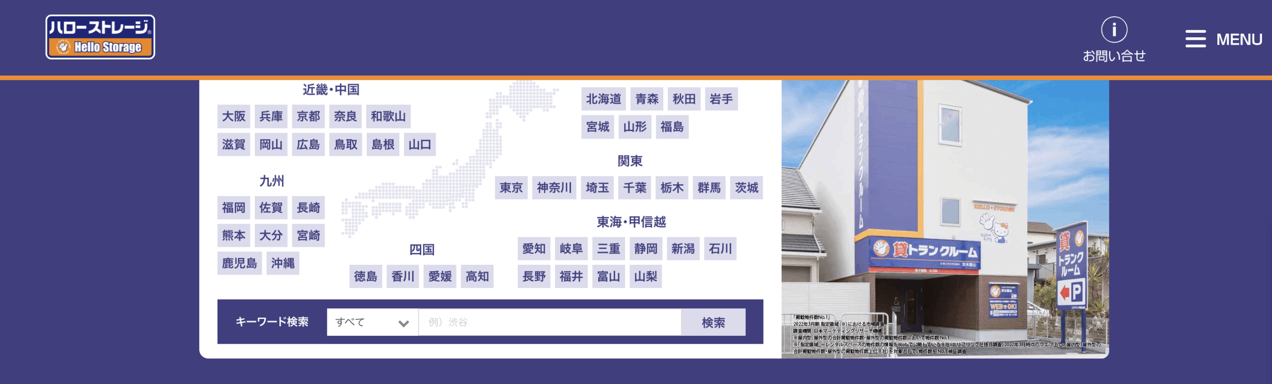ハローストレージの最大の特徴は、物件数の多さ。