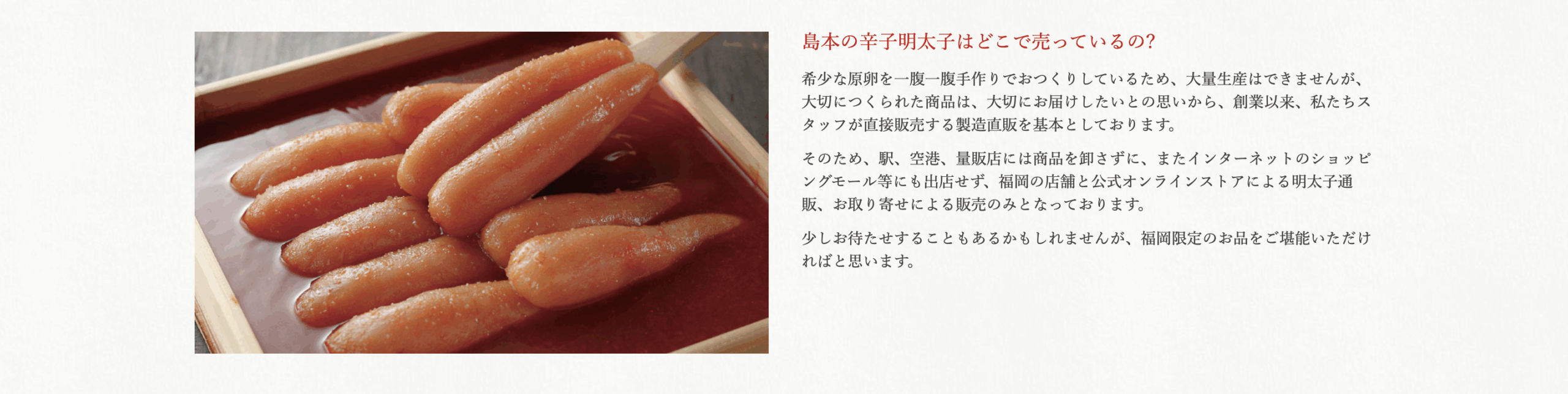 ぜひ、島本のこだわりが詰まった明太子で“本物の美味しさ”を味わってみてください。