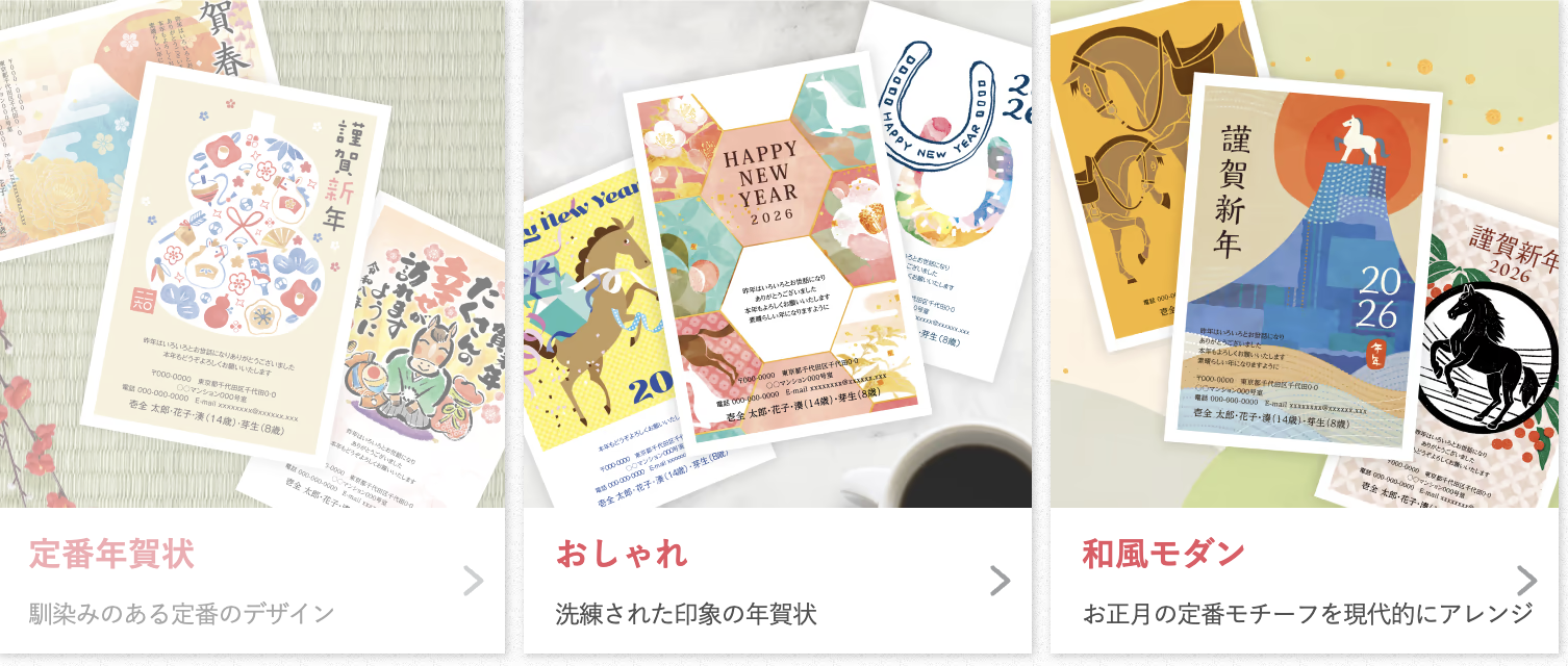 年賀状作りにおける「手間・時間・不安」をすべて減らしてくれる便利なサービスです。