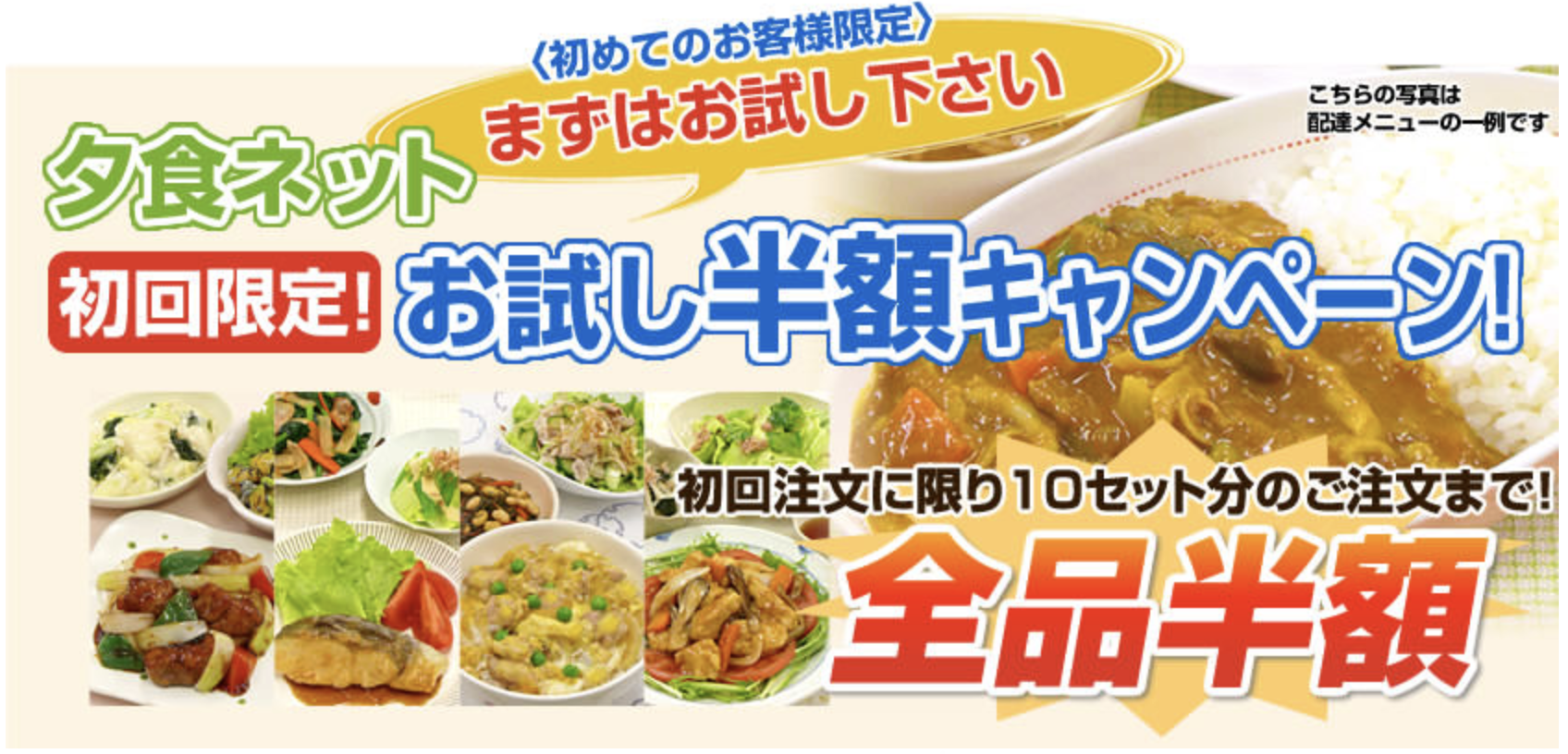 夕食.netでは、初めての利用者向けに50%OFFキャンペーンを実施しています。