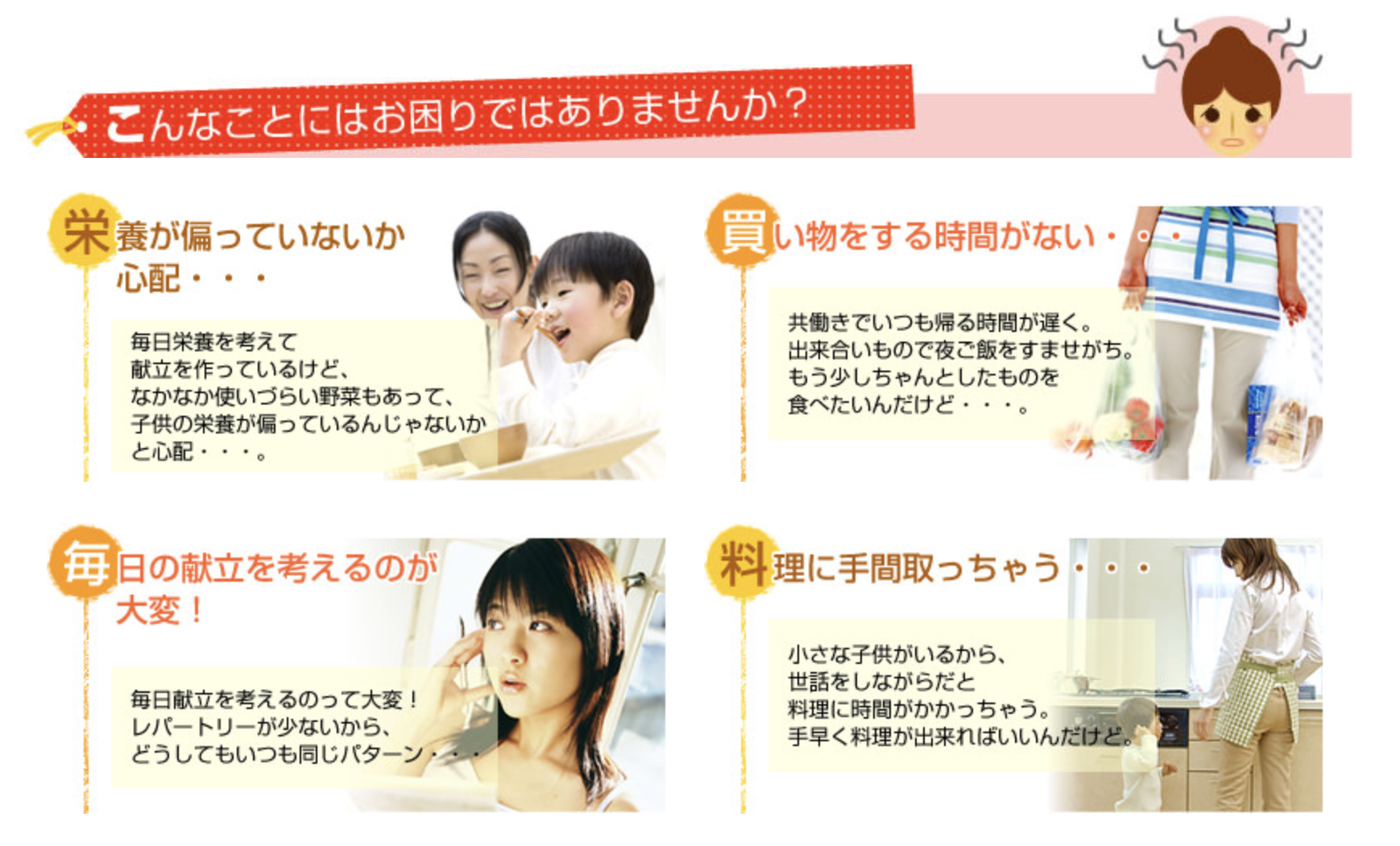 - 共働きで毎日の食事が大変