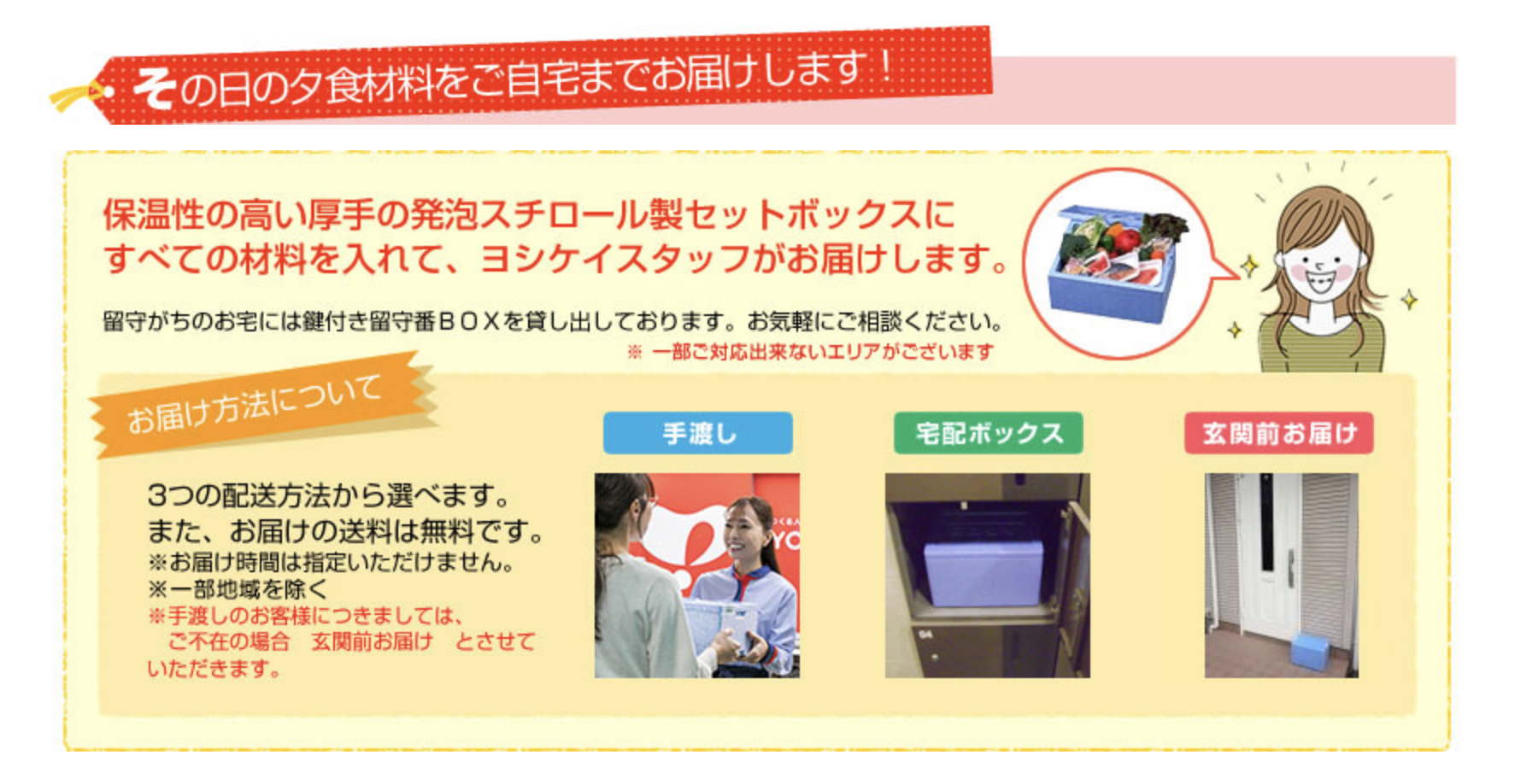 - 対応エリアが限られているため、必ず配送可能か確認