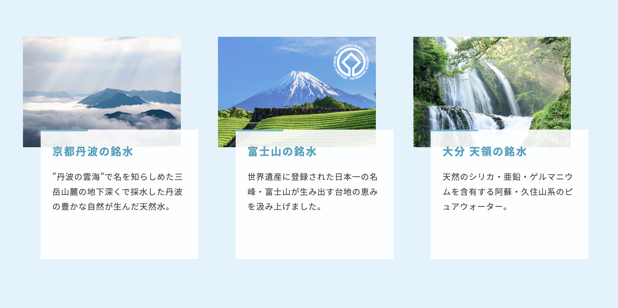 飲み水としてはもちろん、料理や日常生活のさまざまなシーンで活躍し、暮らしの質をさりげなく高めてくれます。