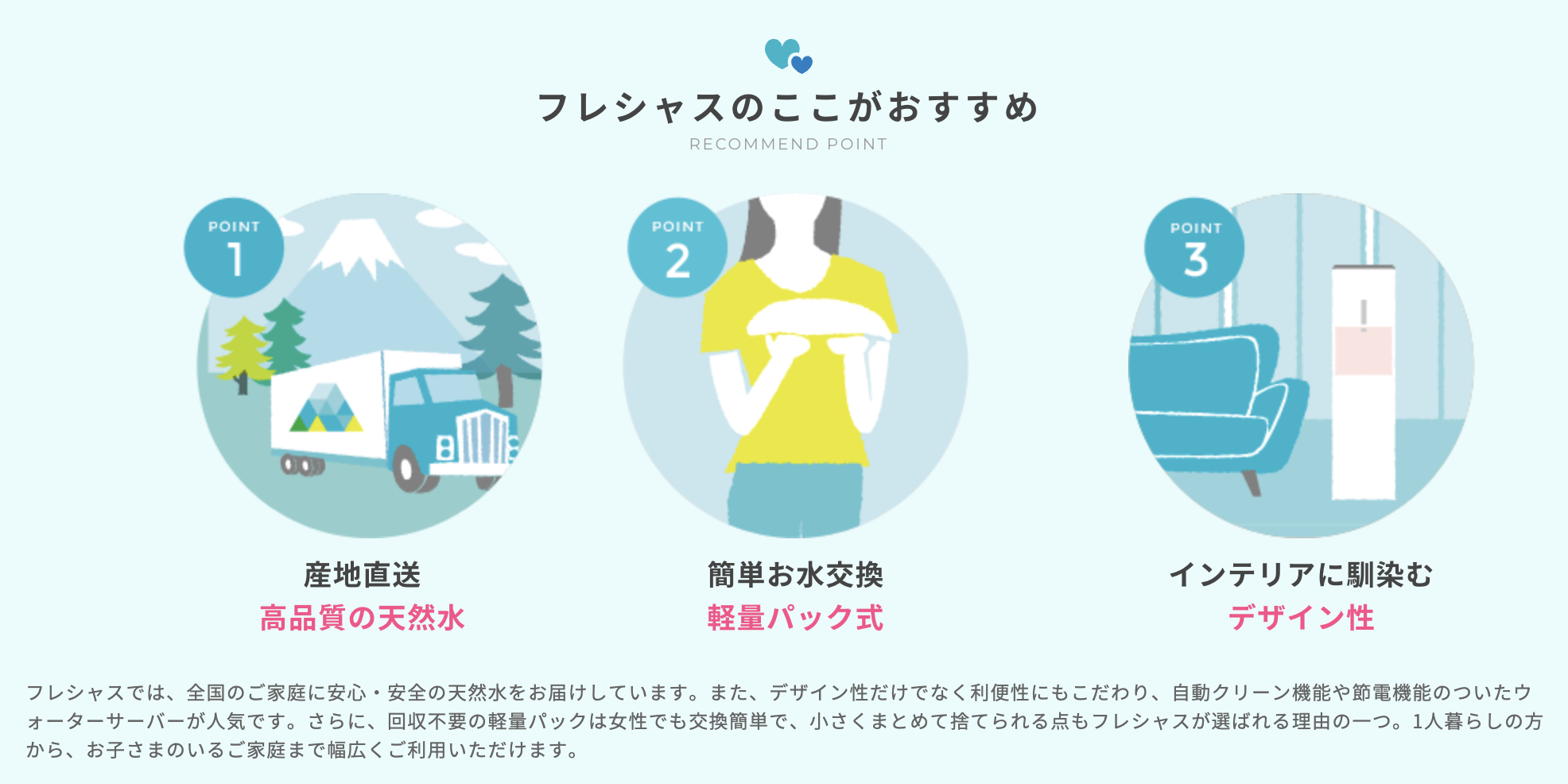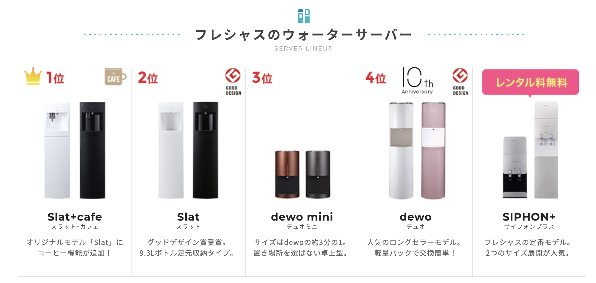 おいしくて、使いやすくて、見た目も満足できるウォーターサーバーを探している方は、ぜひ【フレシャス】を検討してみてください。