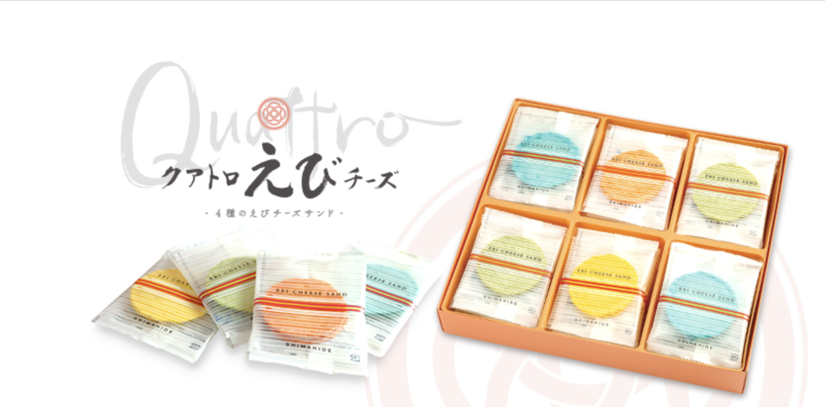 クアトロえびチーズは、えびせんの香ばしさとチーズのコクを掛け合わせた、新感覚のスナックです。