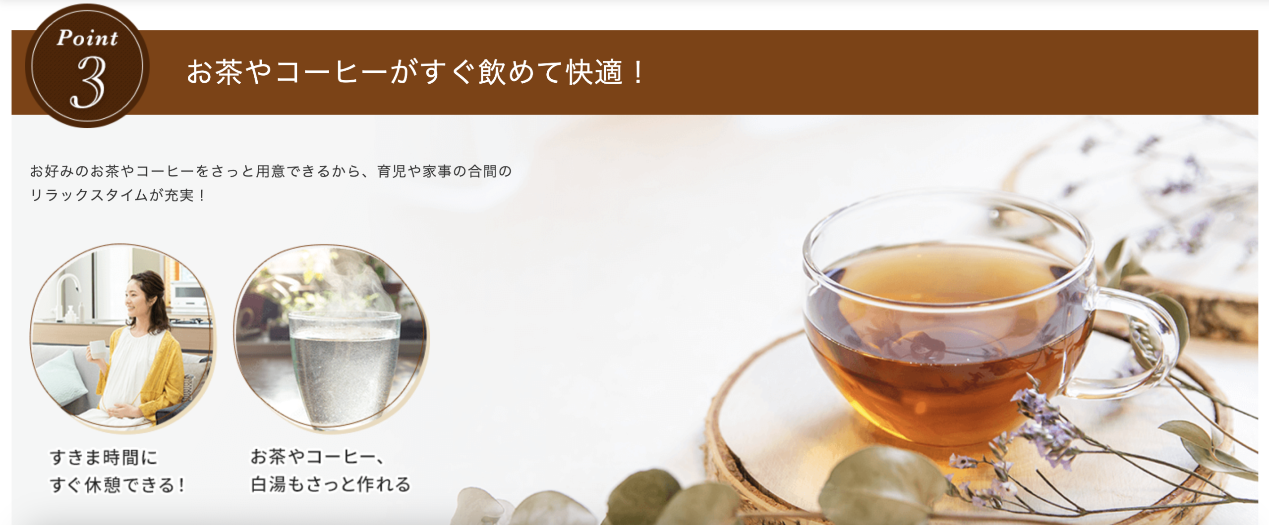 お湯を沸かす手間が省け、育児中の時間短縮につながります。